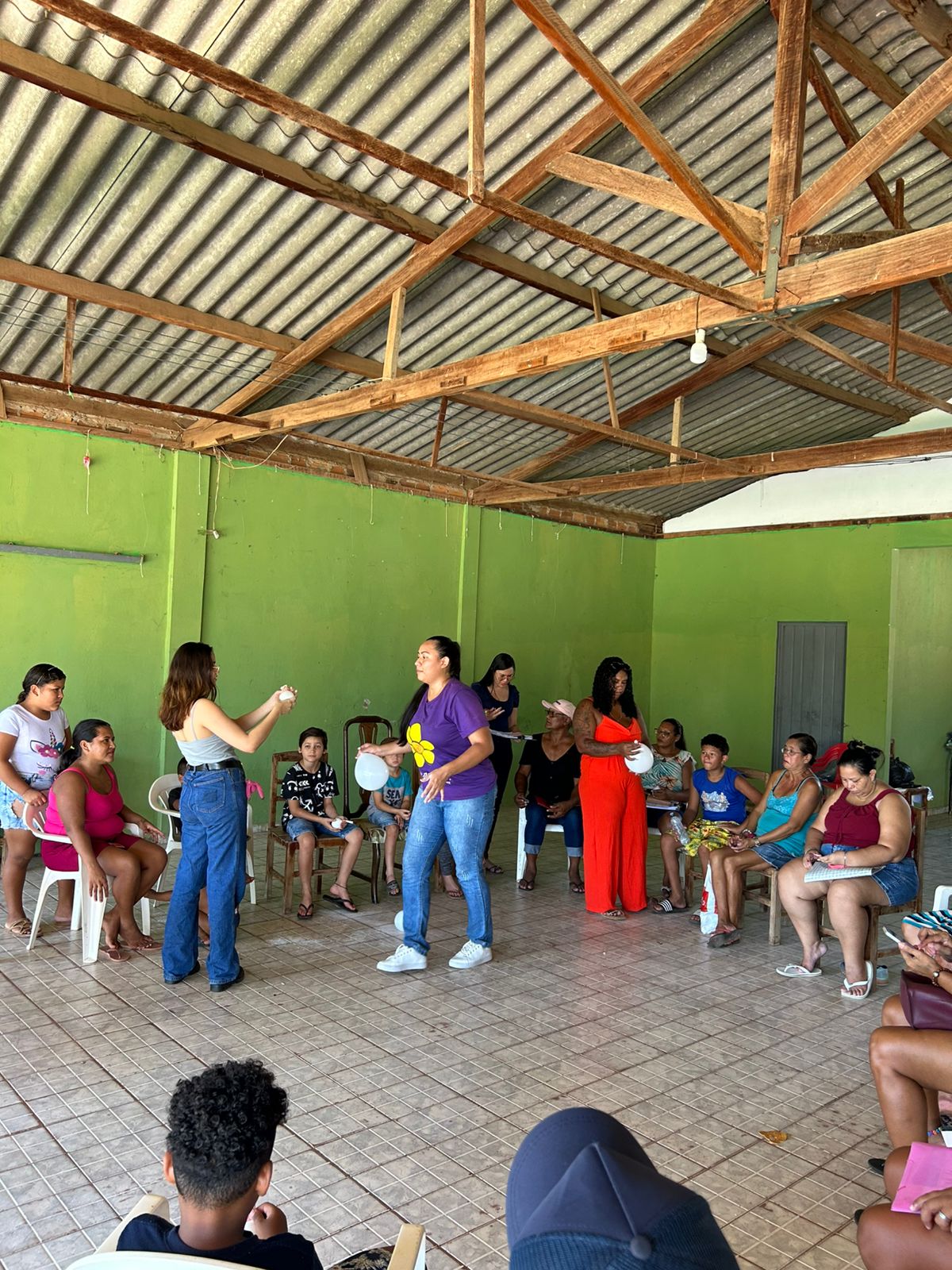 Durante o encontro, foi promovida uma oficina socioeducativa de confecção de bonecos com balões, utilizada como ferramenta lúdica e pedagógica para estimular o diálogo, a troca de experiências e a reflexão sobre os impactos do trabalho infantil no desenvolvimento físico, emocional e social de crianças e adolescentes. A ação também possibilitou a orientação das famílias quanto aos serviços, programas e benefícios ofertados pela rede socioassistencial.