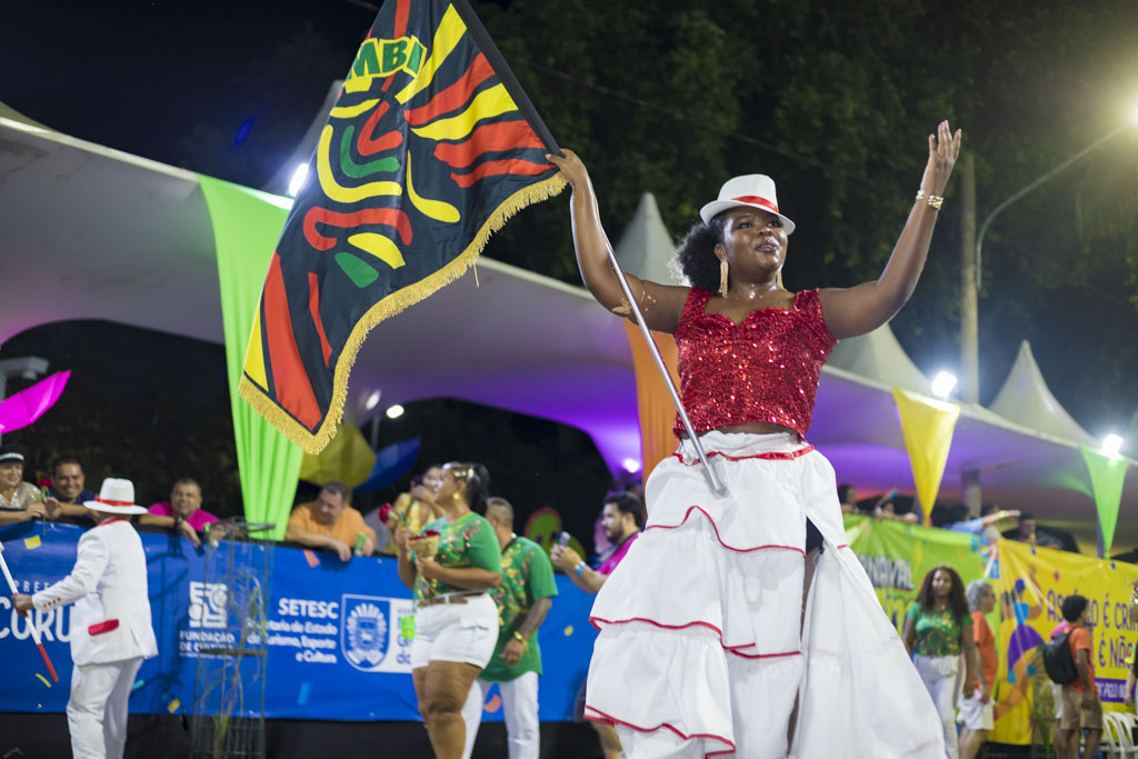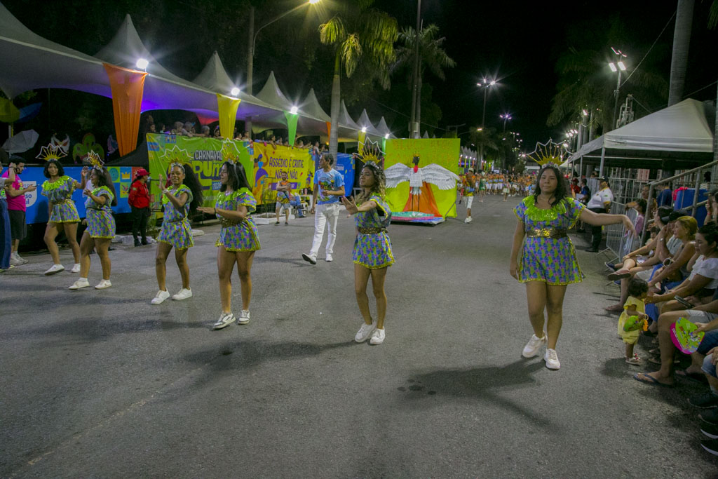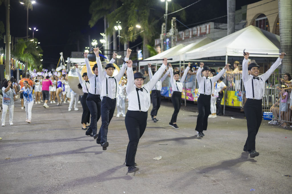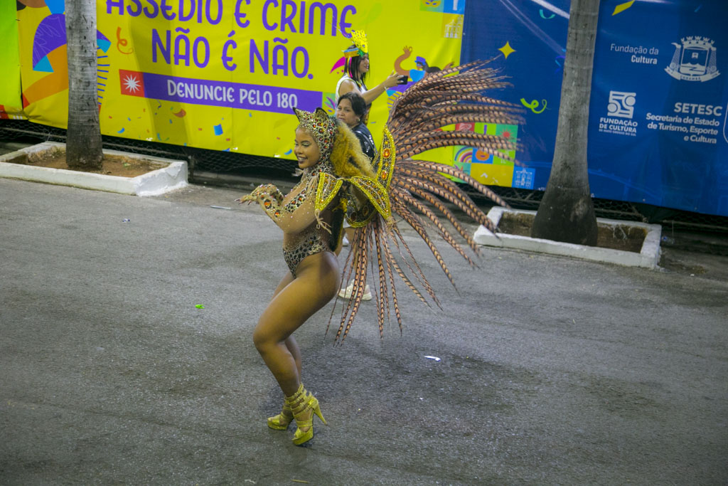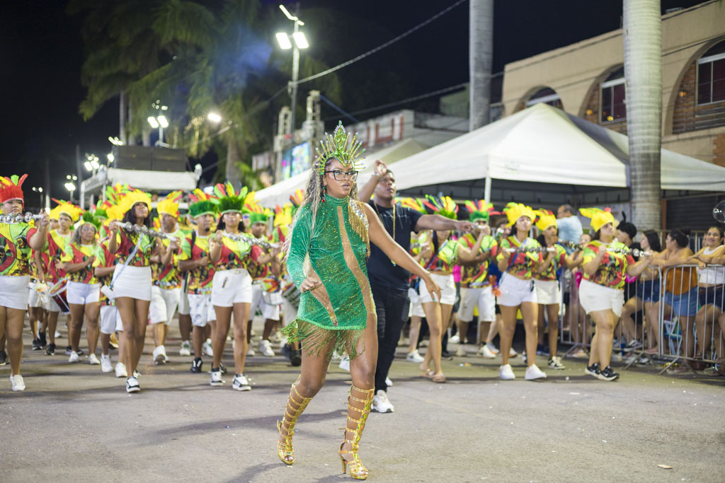 Abrindo a noite, o Bloco Afro Samba Reggae encantou o público com o enredo “O Rei Tuiuiú e a Princesa Vitória-Régia”, destacando a grandiosidade do Pantanal e a urgência de sua preservação. Com cerca de 600 componentes, o bloco transformou a avenida em um espetáculo de cores e sons, exaltando a fauna, a flora e o ciclo das águas, enquanto a bateria “Furiosa do Pantanal” conduziu o desfile em ritmo contagiante.