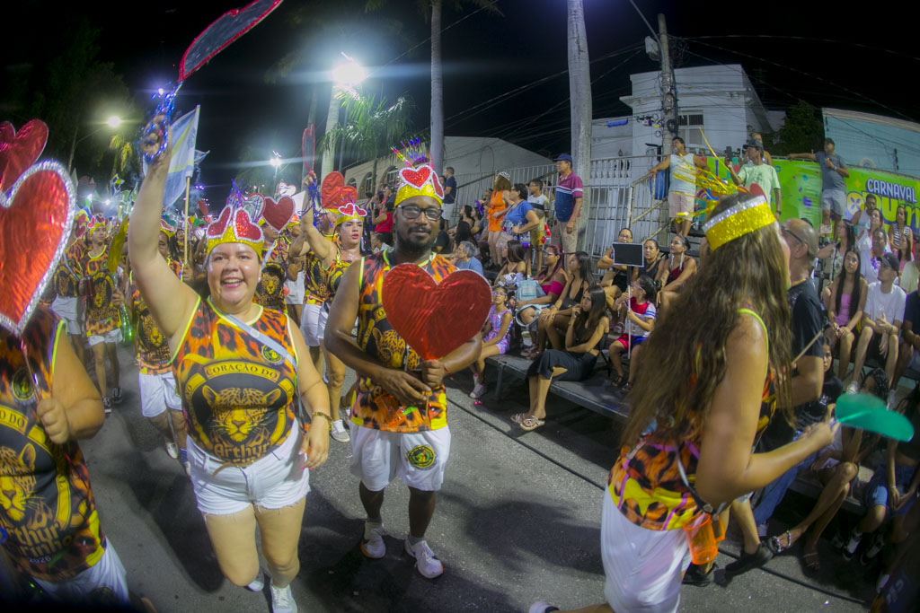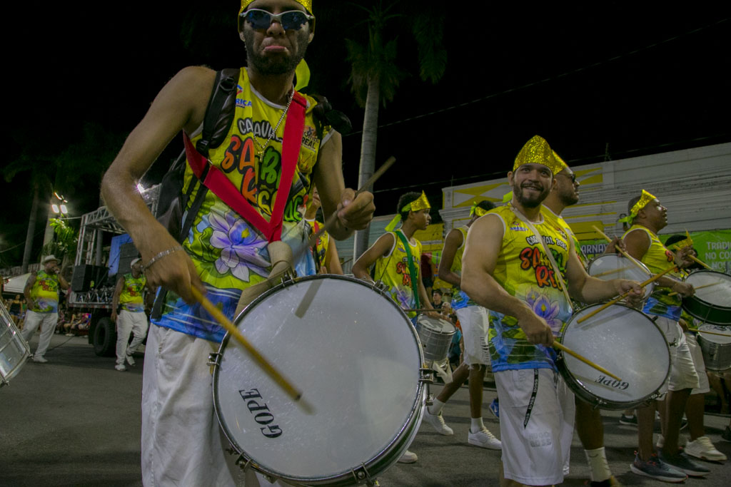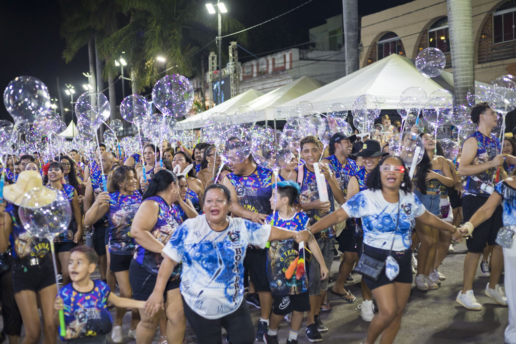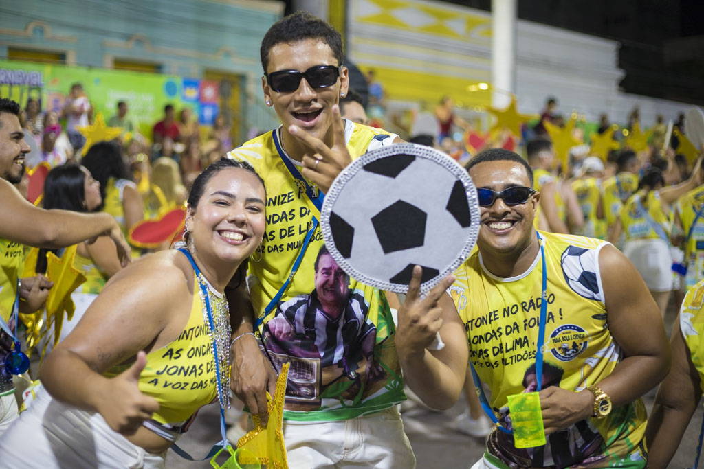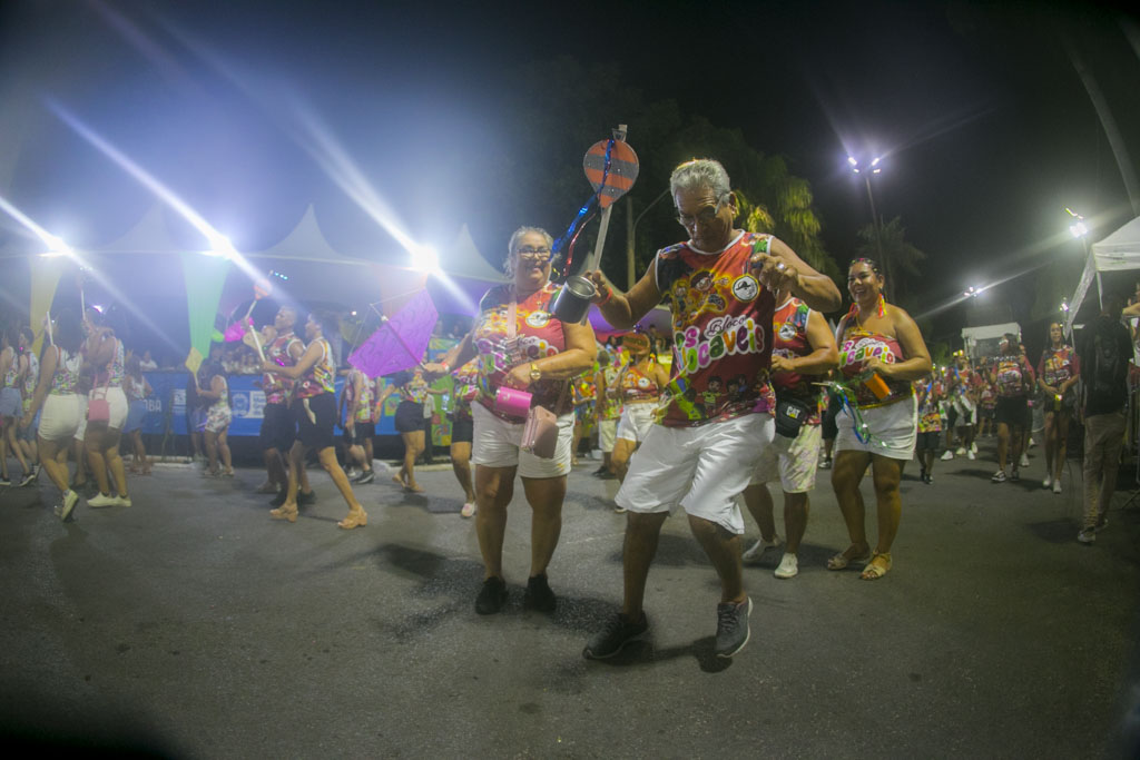 O Bloco Praia, Bola e Cerveja levou irreverência à passarela ao homenagear o radialista Jonas de Lima, conhecido como “a voz da multidão”. Com fantasias criativas, bateria animada e grande interação com o público, celebrou a comunicação popular e a essência democrática do carnaval.
