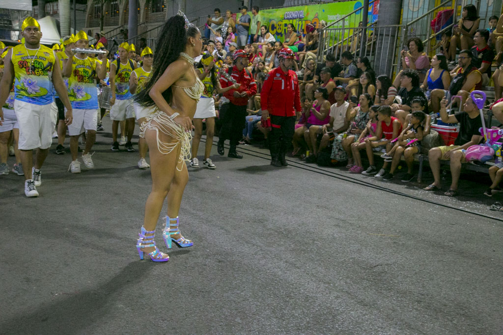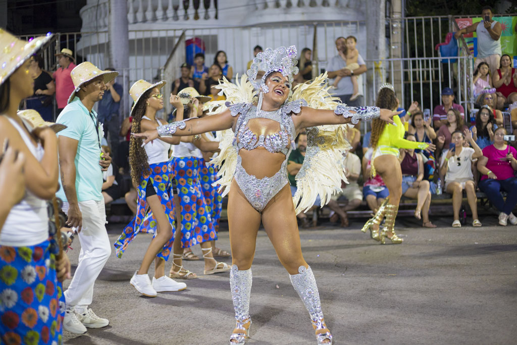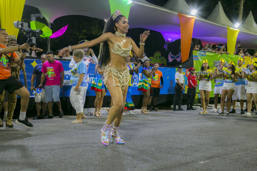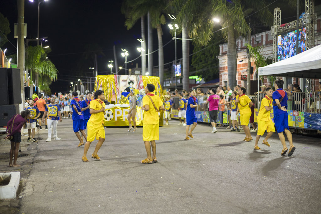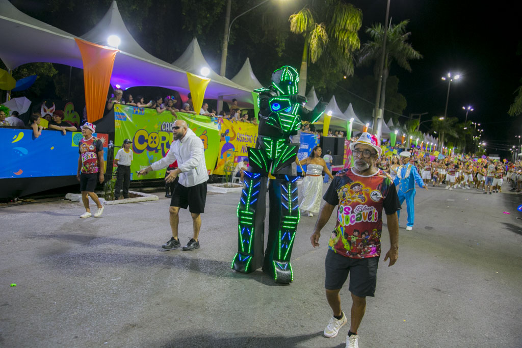 Com cerca de 600 componentes, o Bloco Os Intocáveis apresentou o enredo “A essência na infância: da simplicidade à tecnologia”, conduzindo o público por uma viagem nostálgica entre brincadeiras de rua e o universo digital. Ao som da Bateria Furacão, o desfile equilibrou memória afetiva e contemporaneidade em uma apresentação leve e reflexiva.