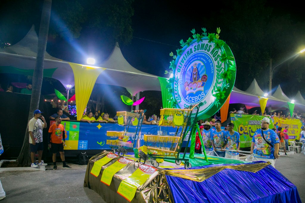 O Bloco Oliveira Somos Nós levou à avenida homenagem ao empreendedor Iverton Saraiva, ressaltando sua trajetória de trabalho e compromisso social. Com aproximadamente mil foliões, apresentou comissão de frente, carro abre-alas, alas temáticas e a bateria Força Jovem, em um desfile vibrante e comunitário.