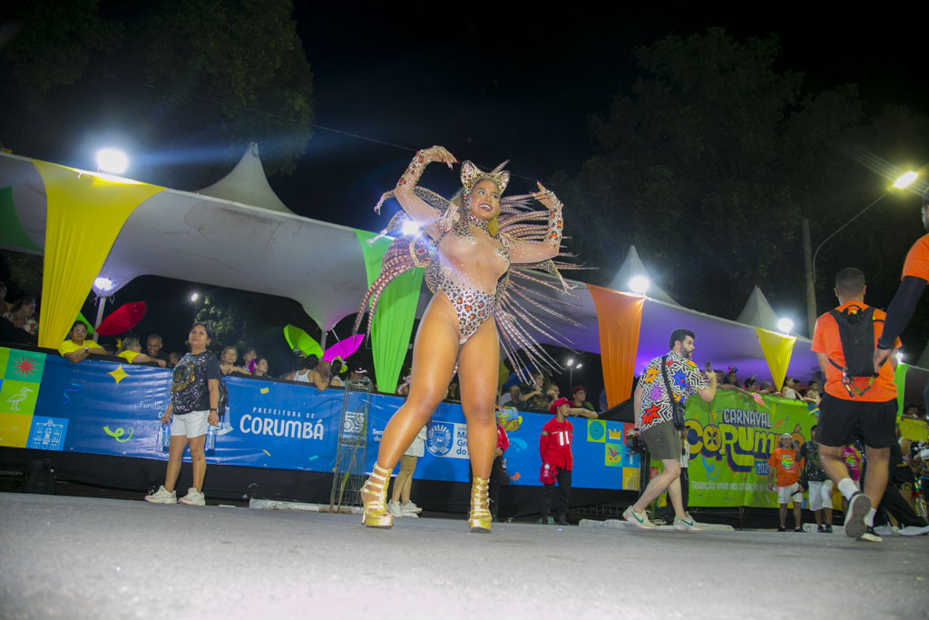 Em seguida, o Bloco Arthur Marinho emocionou o público ao prestar homenagem à senadora Soraya Thronicke, destacada como “a onça no coração do Pantanal”. Com desfile organizado, componentes empolgados e bateria vibrante, transformou a avenida em espaço de reconhecimento e celebração.