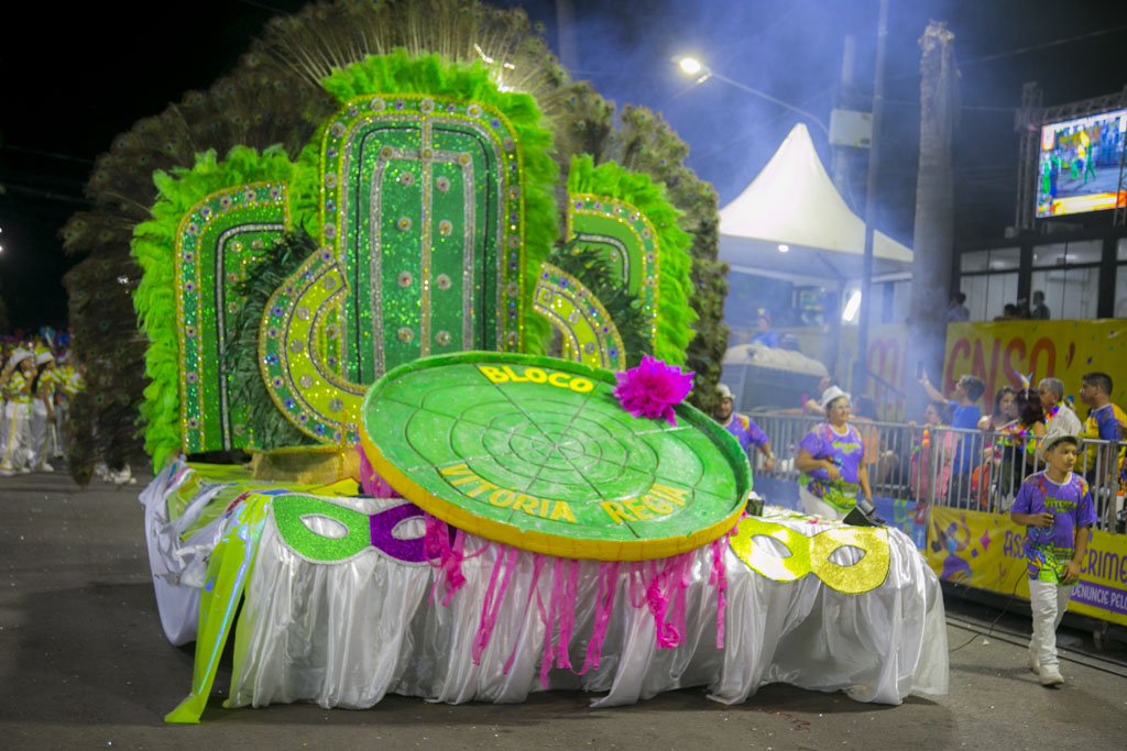 Encerrando a noite, o Bloco Vitória Régia, criado em 1994, homenageou o carnavalesco Valdir Gomes, referência do carnaval sul-mato-grossense. Com aproximadamente mil integrantes, destacou sua trajetória artística e contribuição cultural, em um desfile marcado por brilho, tradição e forte participação popular.