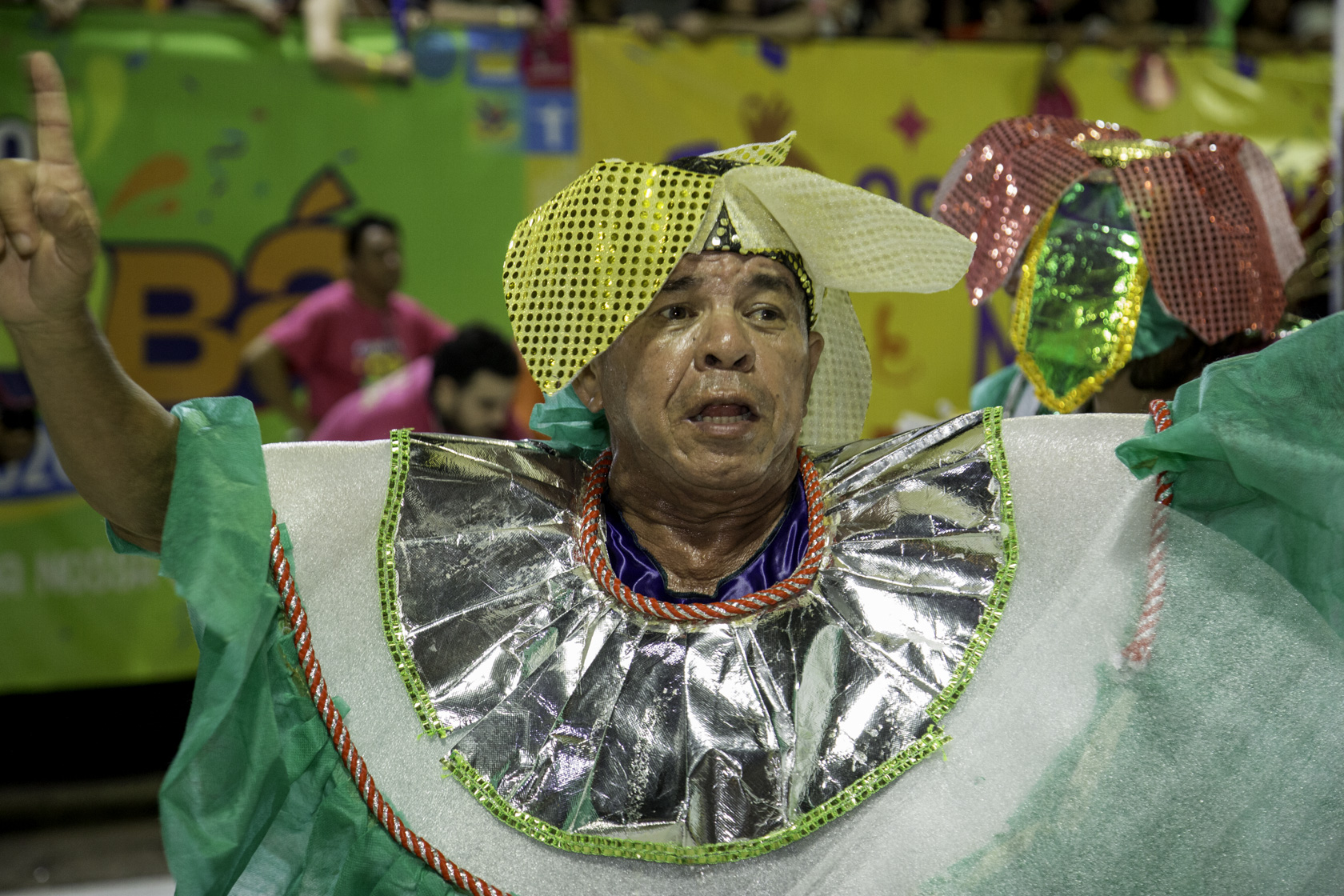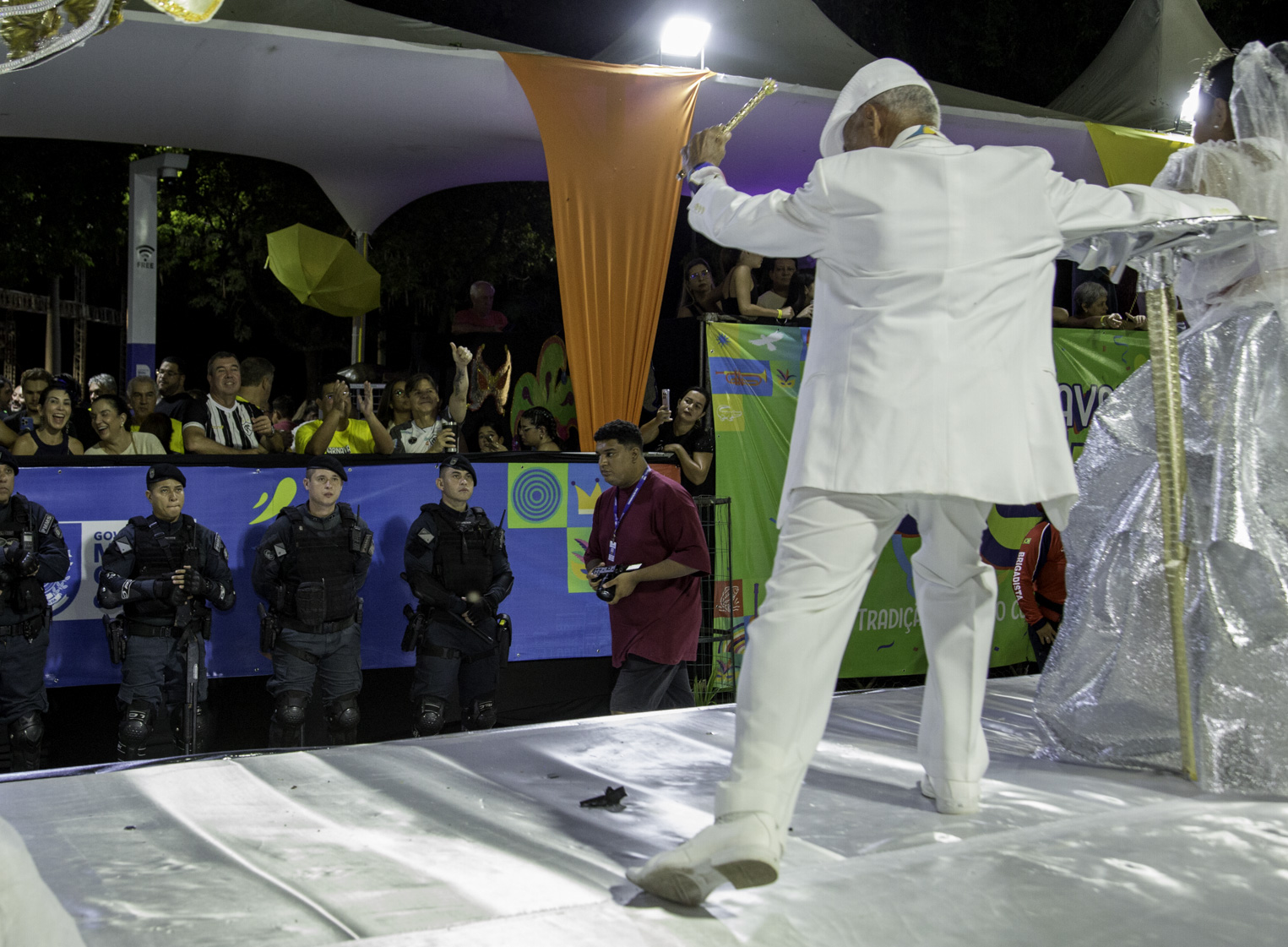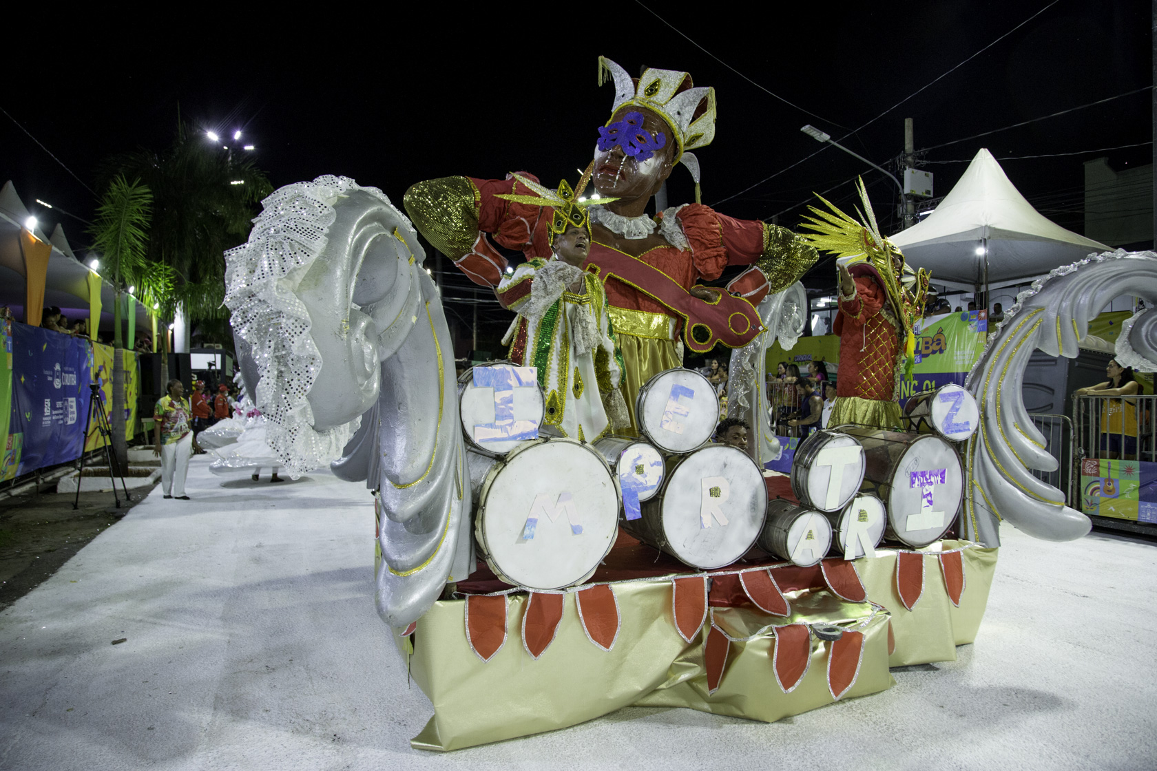 As alegorias reforçaram o caráter comemorativo do desfile. O abre-alas saudou o Rei do Carnaval, enquanto outros carros destacaram as cores da escola e reverenciaram aqueles que ajudaram a construir sua história. O encerramento trouxe a alegoria “Os Imperadores do Amanhã”, evidenciando os projetos sociais desenvolvidos pela agremiação e a aposta nas novas gerações como guardiãs do legado carnavalesco.