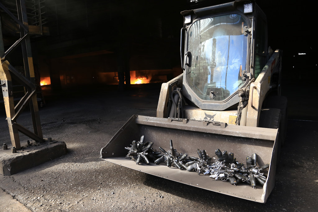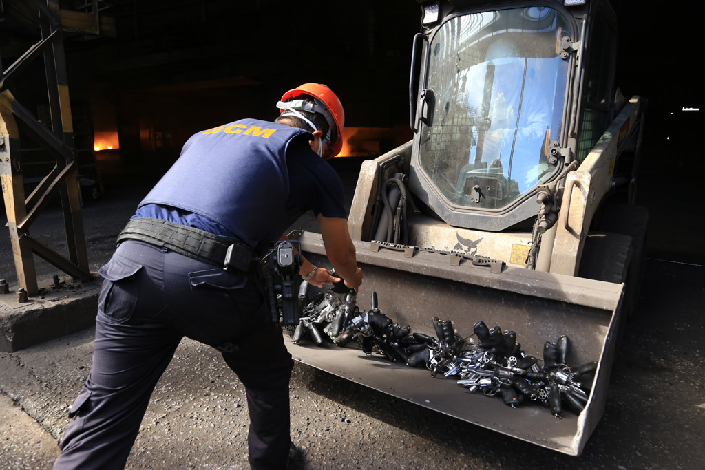 A incineração do armamento ocorreu na sede da Granha Ligas, empresa especializada na produção de ferro-ligas de manganês. O forno utilizado operou a temperaturas entre 1.800 e 2.000 graus Celsius.