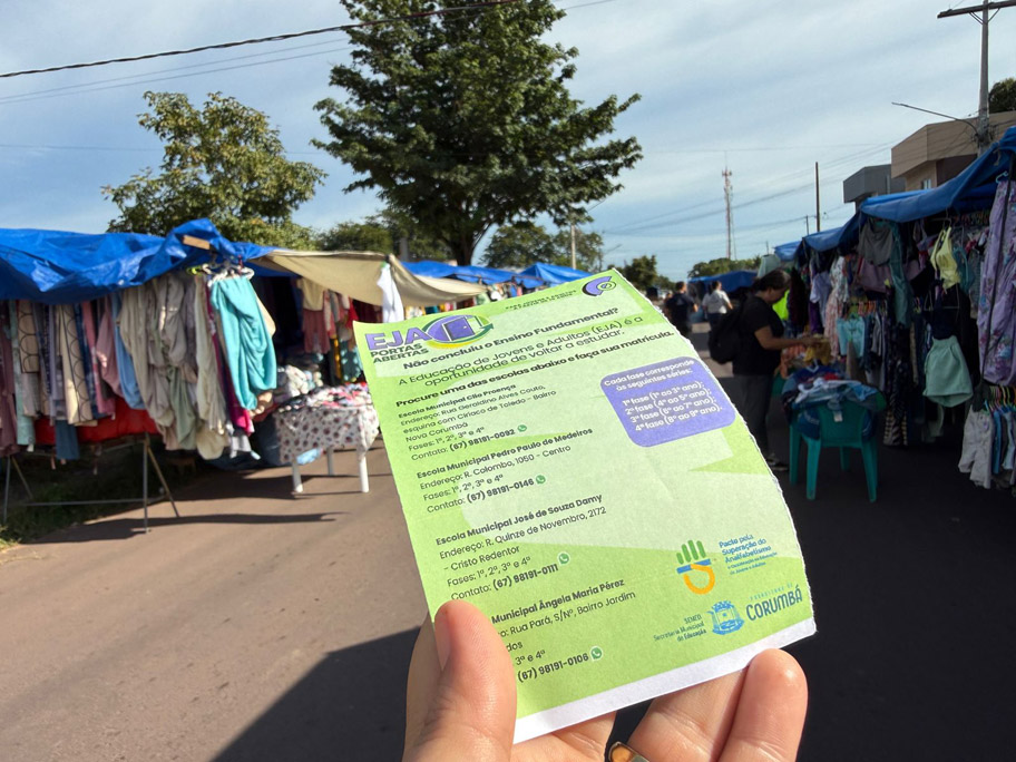 Como parte das ações, entre os dias 13 e 17 de abril, equipes da SEMED estão realizando panfletagem nas feiras livres de Corumbá, com distribuição de materiais informativos e orientações sobre os locais que ofertam a modalidade. Também estão previstas atividades nos Centros de Referência de Assistência Social (CRAS) e em unidades de saúde, em parceria com as secretarias municipais, com a realização de palestras e ações de sensibilização.