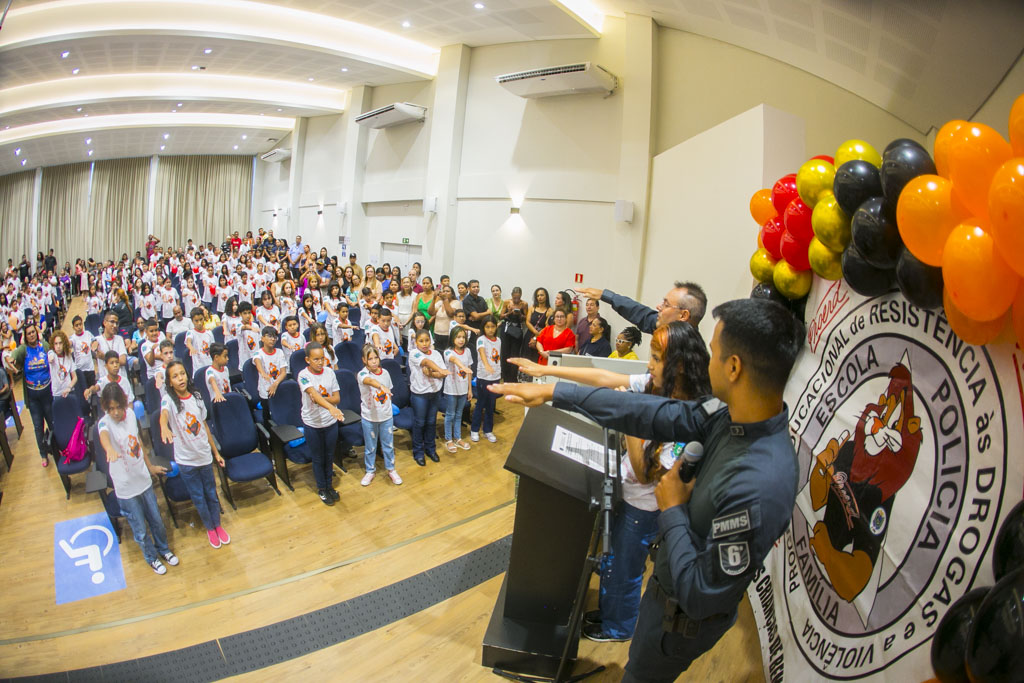 A Prefeitura de Corumbá, por meio da Secretaria Municipal de Educação, realizou na sexta-feira, 05 de dezembro, a solenidade de encerramento do Programa Educacional de Resistência às Drogas e à Violência (PROERD) no auditório da Unicesumar. A cerimônia marcou o fim das ações de 2025, que promoveram prevenção às drogas e à violência, com foco no fortalecimento de valores, na convivência saudável e em escolhas seguras entre crianças.