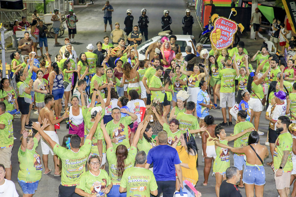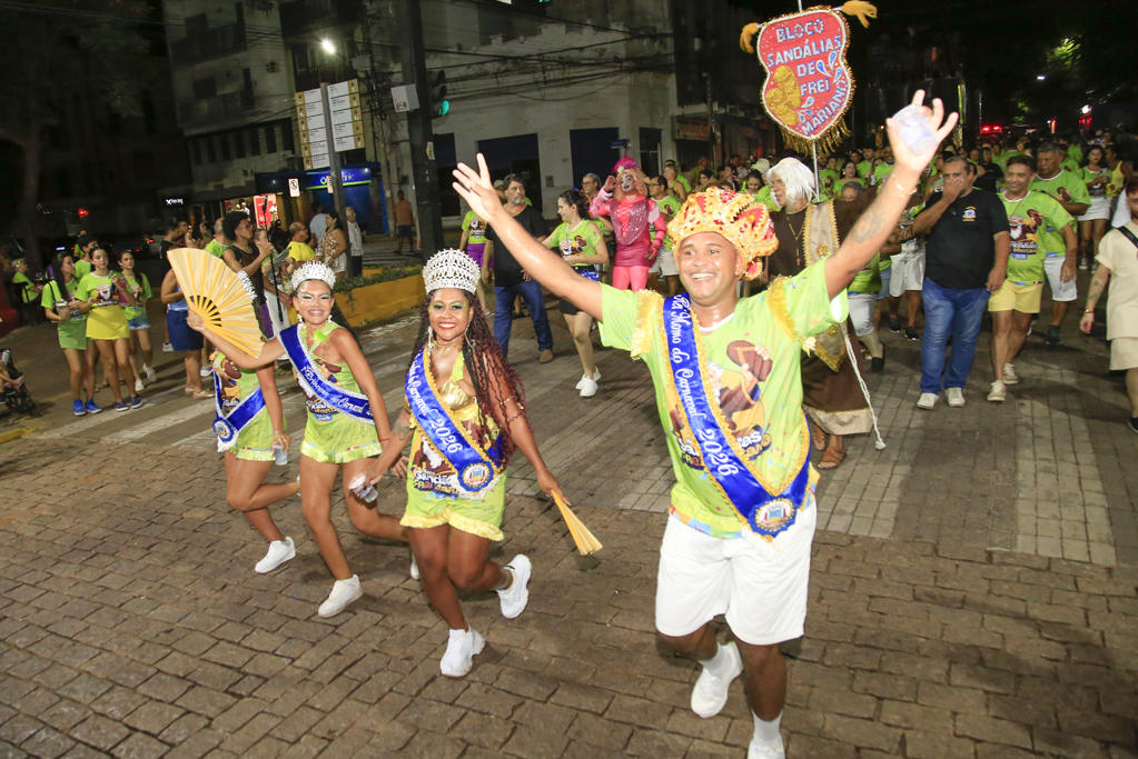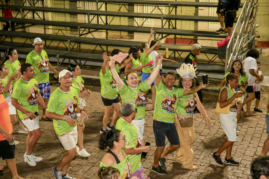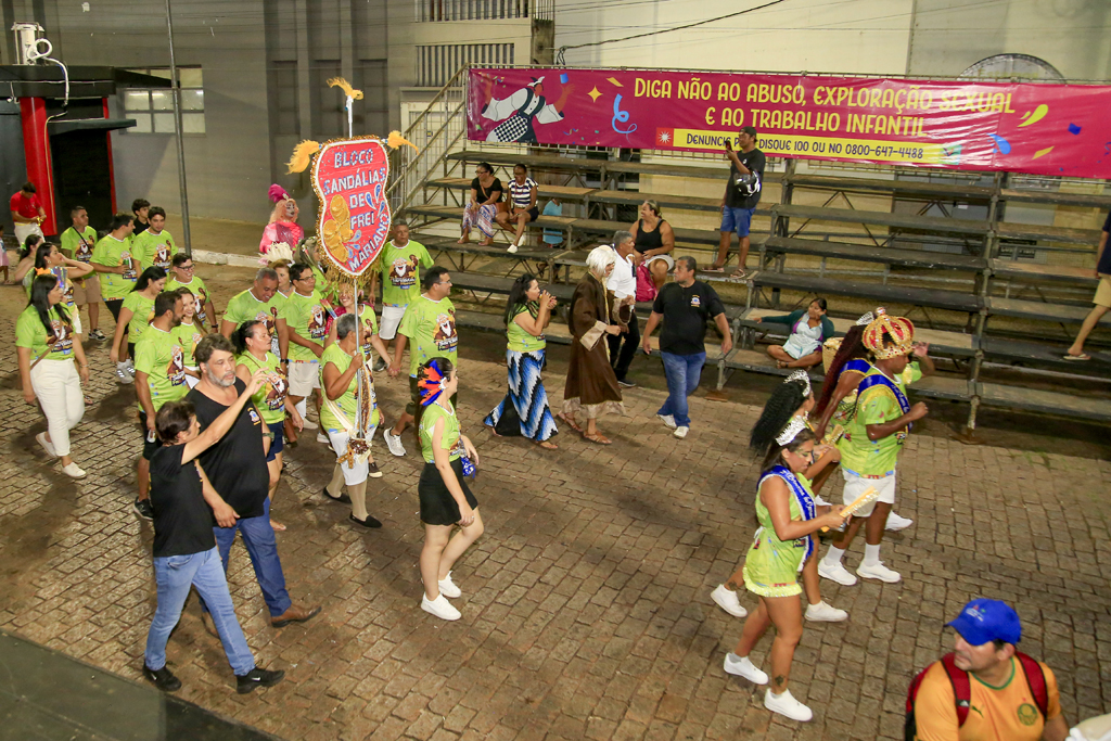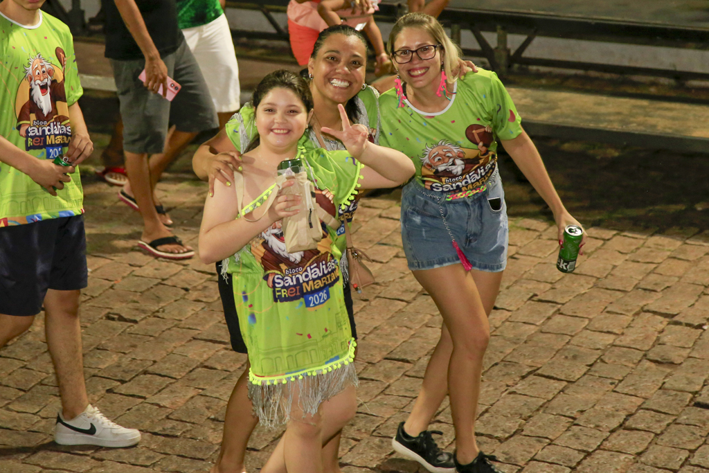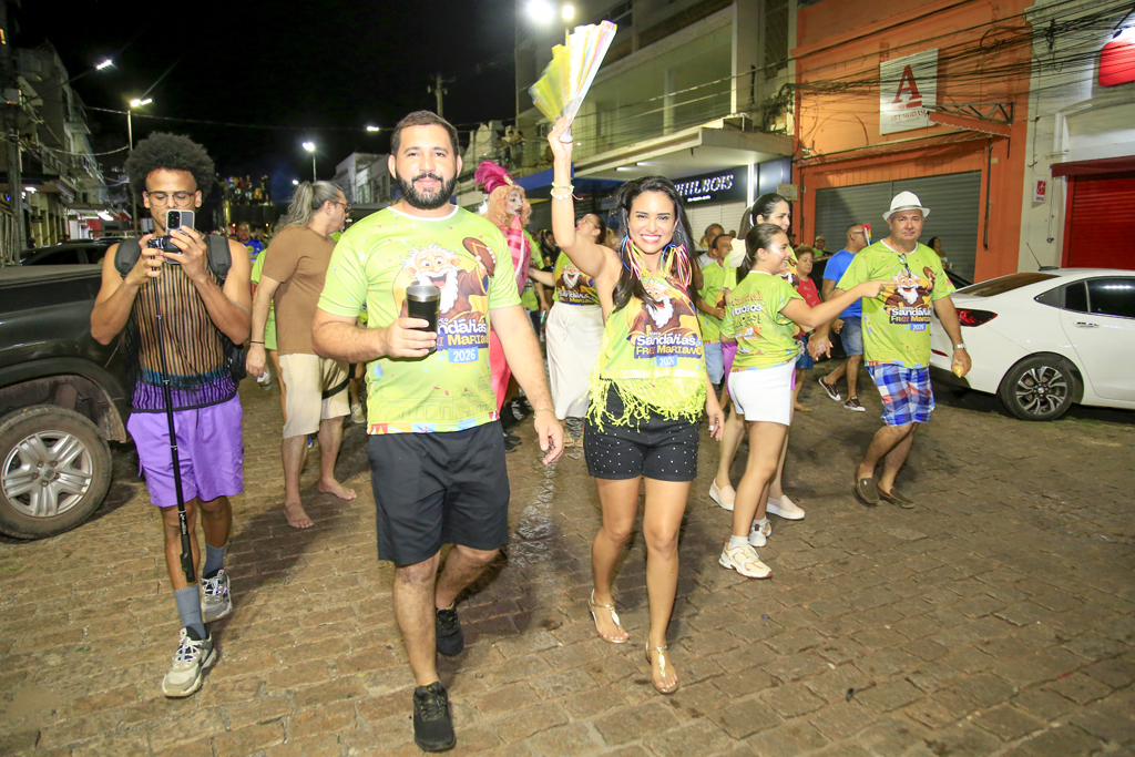 A programação começou com concentração no Jardim da Independência, às 20 horas, reunindo brincantes, famílias e admiradores do bloco. De lá, o cortejo seguiu animado, embalado por sambas-enredo que marcaram época e, principalmente, pela irreverente marchinha inspirada na lenda de Frei Mariano de Bagnaia, cujo refrão — “Vôte, vôte, vôte, vôte! Chispa, chispa, chispa!” — foi cantado em coro ao longo do trajeto.