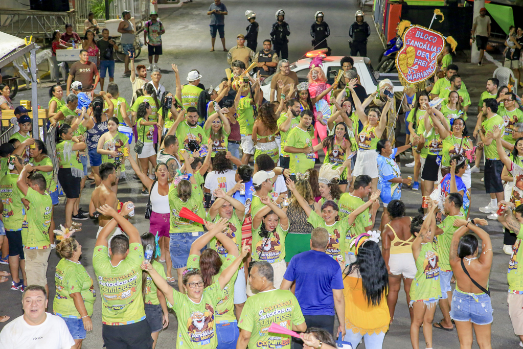 O desfile contou com a presença do prefeito Doutor Gabriel Alves de Oliveira, que esteve acompanhado da primeira-dama, Tatiane Patrício, participando da celebração ao lado da comunidade. Também chamou atenção a expressiva participação de servidores municipais, que mantêm viva a essência do bloco, criado originalmente por trabalhadores do serviço público e que, ao longo dos anos, ampliou-se para abraçar toda a população. "O Sandálias é patrimônio afetivo da nossa gente, uma tradição forte que mantém viva a cultura popular da cidade. São vinte anos abrindo o nosso Carnaval com irreverência e criatividade", disse Dr. Gabriel.